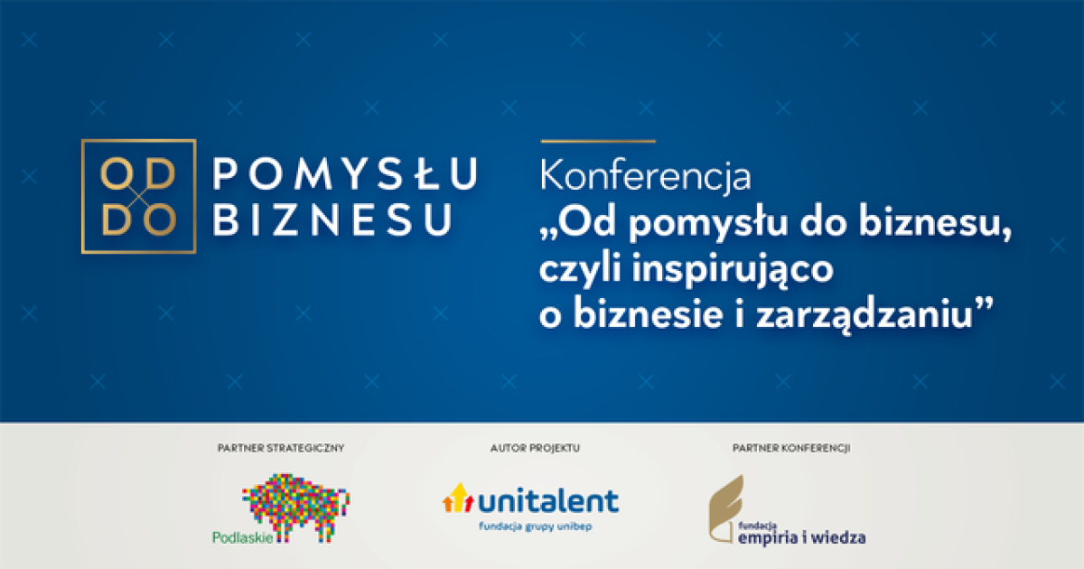 Konferencja odbędzie się w ramach projektu „Od pomysłu do biznesu” realizowanego przez Fundację Grupy Unibep Unitalent. Partnerem konferencji jest Fundacja Empiria i Wiedza. Partnerem strategicznym projektu jest Województwo Podlaskie, zaś merytorycznymi: Wydział Nauk o Edukacji Uniwersytetu w Białymstoku, Fundacja ProAkademika oraz Biznes Lab. Partnerzy projektu to: Fundacja Arhelan Społecznie Odpowiedzialni, Malow sp. z o.o., Klaster Obróbki Metali, Infotech.